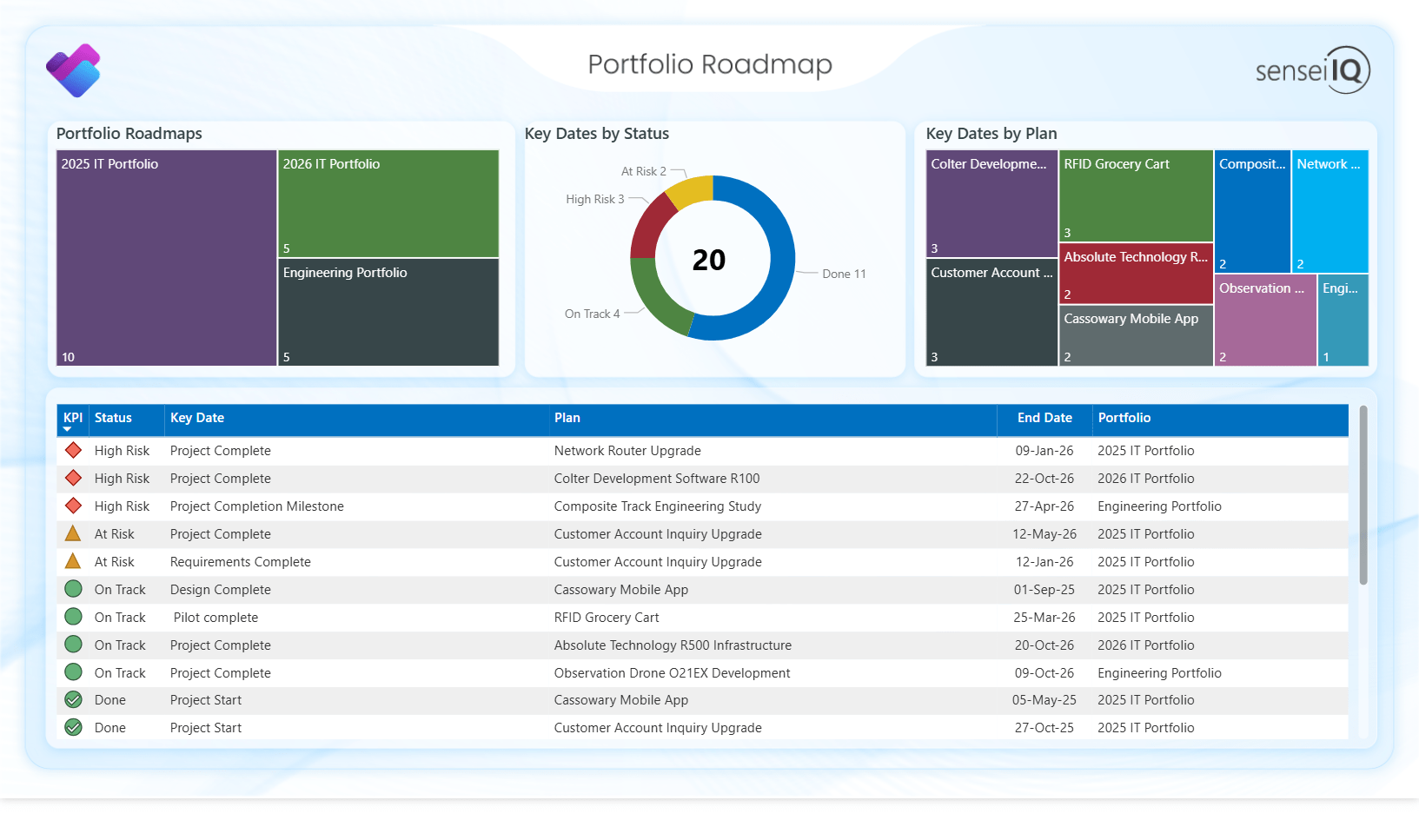 If you have created roadmaps for your portfolios, you’ll see the key dates on the Portfolio Roadmap page.